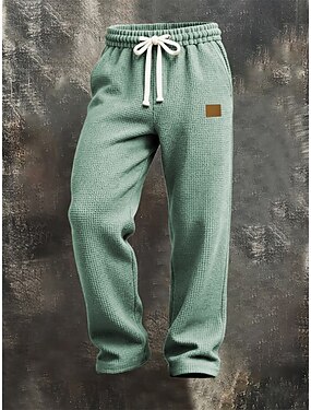 Homens Calças Esportivas Calças Calça de moletom de perna reta Calça Waffle Com Cordão Bolsos Cintura elástica Tecido Conforto Comprimento total Esportes Diário Férias Moda Azul Preto Com Stretch