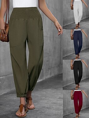 Mulheres Calças Calça casual Calça verão Calças de praia Férias Moda Casual Diário Comprimento total Cintura Alta Côr Sólida Tecido Bolsos Cintura elástica Conforto Secagem Rápida Macio Micro-Elástica