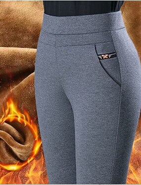 Mulheres Calças Elegante Moda Casual Comprimento total Cintura Baixa Tecido Bolsos Cintura elástica Térmico / Quente Confortável Engrossar Micro-Elástica Diário Ao ar livre Rua Cuticolor Marron