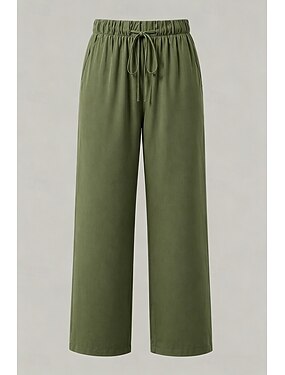 Mulheres Atrevido chinês Roupa de rua Casual Comprimento total Cintura Média Tecido Bolsos Cintura elástica Confortável Micro-Elástica Diário Ao ar livre Férias Marron Escuro Preto Marfim Verde