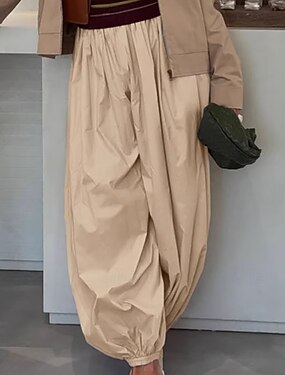 Mulheres Calças Roupa de rua Casual Comprimento total Natural Tecido Bolsos Design de cordão elástico Confortável Exterior Rua Roupa Diária Para Noite Marron Escuro Pavão Azul Azul de céu claro Azul