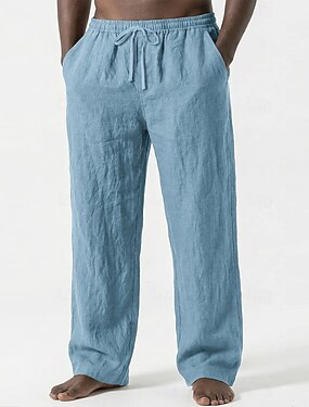 Homens Calças de linho Calças Calça verão Calças largas Calças de praia Cintura elástica Com Cordão Perna reta Tecido Conforto Respirável Comprimento total Ao ar livre Casual Diário Férias Estilo