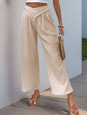 Mulheres Calças Calça verão Calças de praia Férias Moda Casual Diário Mimolet Cintura Alta Côr Sólida Tecido Cintura elástica Perna larga Conforto Macio Respirável Sem Elasticidade Streetwear Praia