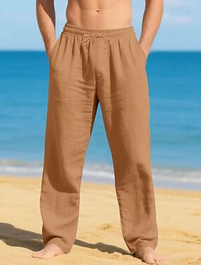 Homens Calças de linho Calças Calça verão Calças largas Calças de praia Cintura elástica Com Cordão Perna reta Tecido Conforto Respirável Comprimento total Ao ar livre Feriado Praia Férias Moda