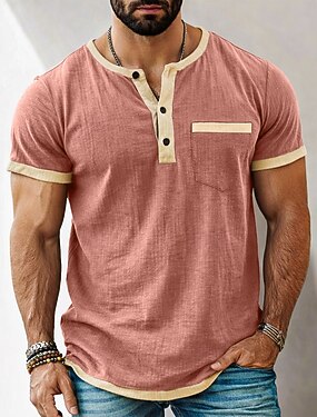 Homens Camisa Henley Camisa 100% algodão com lavagem ácida Camiseta Manga Curta Retro Vintage Casual Angustiado Estilo vintage Lavado Henley Casual Verão Primavera Outono Preto Verde Claro Rosa