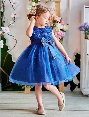 Infantil Para Meninas Vestido de festa Côr Sólida Sem Manga Aniversário festa de Natal Princesa Doce Poliéster Altura dos Joelhos Vestido de festa Verão Primavera Outono 4-13 anos Azul