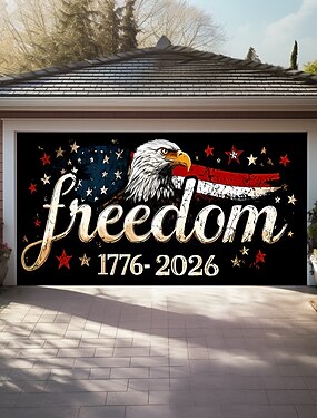 4 de julho de 2026 250º Dia da Memória Liberdade 1776 2026 Águia Americana Bandeira Estrelas Listras Banner da Porta da Garagem Mural ao Ar Livre Patriótico Decoração do Dia da Independência Festa do