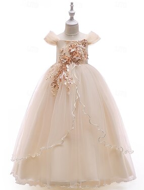 Infantil Bébé Para Meninas Vestido de daminha de honra Vestido Cor Sólida Manga Curta Casamento Festa Diário Com Transparência Com Miçangas Elegante Princesa Poliéster Médio Vestido A Line Verão