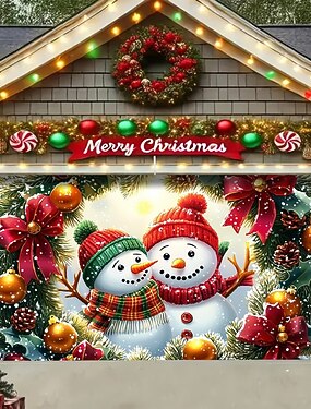 Capa para porta de garagem externa de natal, boneco de neve, irmãos, chapéu de papai noel, guirlanda de natal, árvore de natal, grande tapeçaria, cenário, festa de fim de ano, decoração de parede para