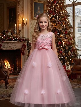 Vestido para Meninas das Flores Para Meninas Vestido formal Traje de casamento Festa Casamento Formal Formal Princesa Com Transparência Côr Sólida Sem Manga Gola Redonda Azul Vermelho Vinho 4 anos +