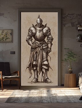 Pôsteres Tampa da porta Banners externos Cavalheiro Vintage Medieval 3D Dorm Sala de Adolescentes Dormitório da faculdade Quarto de fraternidade da caverna masculina Fundos de fotografia Porta de