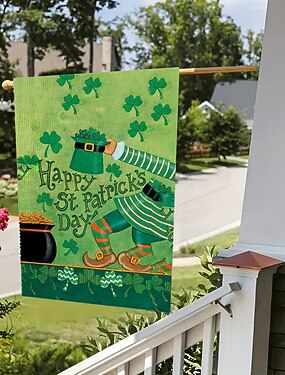 bandeira de jardim do dia de são patrício 12x18 polegadas decorações ao ar livre bem-vindo jardim pátio bandeira trevos da sorte pote de ouro gnomos bandeira de quintal dupla face feriado ao ar livre