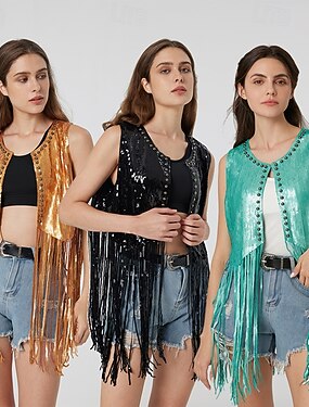 Retro Vintage Anos 70 Discoteca Colete Paetês Franjas Fantasia Mulheres Fantasia de Carnaval Baile de Máscaras Espetáculo Parada do Orgulho Mês do Orgulho Adulto Colete