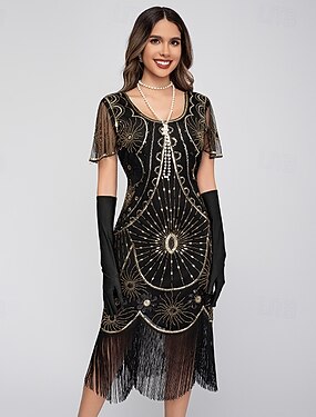 Loucos anos 20 Anos 20 Até os Joelhos Vestido melindroso Sem Mangas O Grande Gatsby Paetês Franja Scoop pescoço Fantasia Mulheres Natal Carnaval bar clandestino Mascarilha Festa Temática Retro Adulto