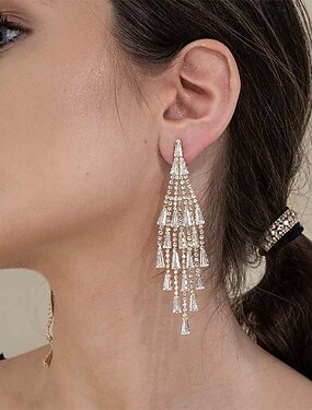 Mulheres Brincos Compridos Brincos com Clipe Longas Caído Precioso Elegante Moda Imitações de Diamante Brincos Jóias Prata Para Casamento Festa Diário 1 par