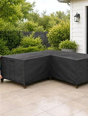 Capa para móveis de jardim, capa para sofá em L, capa impermeável para sofá de vime, para móveis de jardim, conjunto de assentos, sofá de canto, conjunto de lounge de canto, lona (270 x 270 x 90 cm,