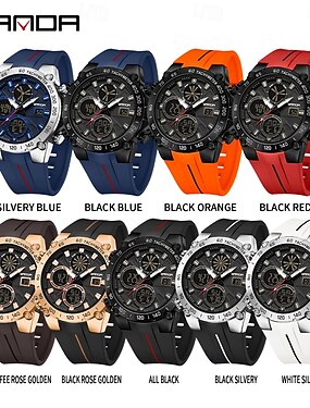 Relógio Digital Masculino SANDA Relógio Casual de Pulso à Moda Esportiva Resistente a Impactos Cronômetro Luminosa Despertador Relógio de Contagem Regressiva Relógio de Aço de Couro