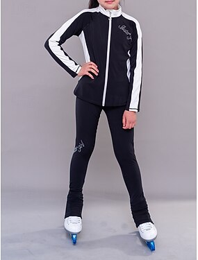 Jaqueta de lã para patinação artística Calças para Patinação no Gelo Jaqueta e Calça para Patinação Artística Mulheres Para Meninas Patinação no Gelo Jaqueta Meia-calça Roupa Preto Branco Patchwork