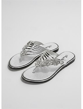 sandálias femininas de dedo com glitter prateado e enfeites de strass - moda praia de verão brilhante para festas e ocasiões especiais