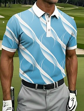 Homens Geométrico Linha Camisas Polo Manga Curta Camisas polo Camisas de colarinho Business casual Roupa Esportiva Botões Primavera Verão Azul Verde