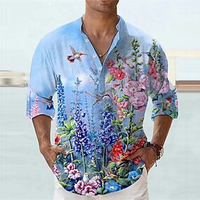 Homens Geométrica Gradiente Ondas Camisa Social Camisa de gola alta Manga Longa Moda Casual Dia a Dia Feriado Primavera Outono Colarinho Mandarim Faixa Impressão 3D Camisas de botões Azul Vermelho