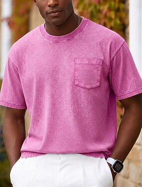 Homens Camisa 100% algodão com lavagem ácida Camiseta Manga Curta Vintage Cor Única Retro Vintage Casual Estilo vintage Tingimento em peça Desaparecido Gola Redonda Casual Diário Casa Primavera Verão