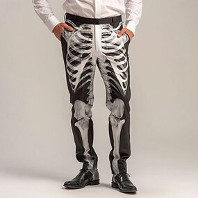 Calças Masculinas de Fantasia Esqueleto Calças Sociais Calças de Terno Cintura Média Casuais ao Ar Livre Férias Calças Slim Fit com Bolsos Primavera Outono Impressão 3D Branco Roxo Laranja