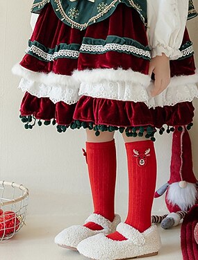 Infantil Para Meninas Natal presente de Natal Meias Finas Meias Colorido Verde Claro Vinho Papai Noel Laço Outono Inverno Roupa Diária