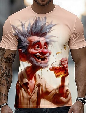 Camiseta masculina com caricatura engraçada de um velho bêbado e maluco em 3D, manga curta, gola redonda, estilo casual, presente para amantes de bebidas. Disponível nos tamanhos P, M, G, GG, XGG e