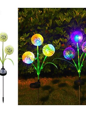 Luzes solares de jardim para decoração externa, luzes solares em formato de dente-de-leão, 2 modos de iluminação com 16 LEDs coloridos, flores decorativas à prova d'água para quintal, pátio, presentes
