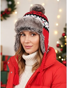 chapéu feminino com estampa de ilha de feira de Natal e forro de pele sintética, várias cores, perfeito para moda de inverno e presentes de Natal