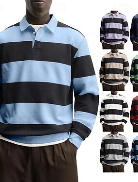 Homens Camisas Polo Camisa de golfe Casual Rua Lapela Manga Longa Básico Moderno Tiras Horizontais Botões Primavera Outono Normal Azul Cinzento Branco Vermelho Azul Marinha Roxo Camisas Polo