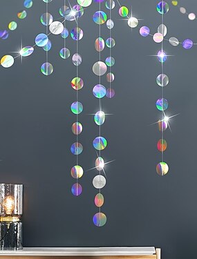 Guirlanda de confete prateado a laser de 5 peças, totalizando 20 metros, ideal para decoração de fundo de festa de aniversário. Decorações para o Ano Novo e presentes de chá de panela.