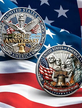 Moeda comemorativa do 250º aniversário dos EUA, moeda patriótica colecionável, águia &liberdade &Moeda comemorativa com design de bandeira, feita em metal resistente, lembrança histórica para