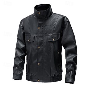 Homens Blusão de couro falso Jaqueta de motociclista Jaqueta de Motocicleta Férias Diário A Prova de Vento Manter Quente Bolsos Outono Inverno Tecido Moda Clássico Colarinho Chinês Padrão Preto