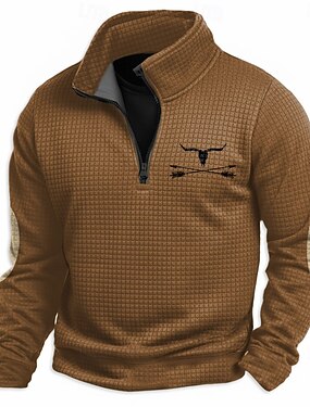 Homens Gado Waffle Moletom Moda Étnico Vintage retrô vaqueiro ocidental Colarinho Chinês Ao ar livre Casa Presente Preto Marron Verde Tropa Cinzento Zip Up Outono Inverno Designer S M L XL XXL XXXL