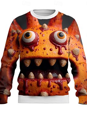 Homens Rosto humano Moletom Casual Manga Longa Gola Redonda Férias Festa Presente Roxo Laranja Crewneck 3D Todas as Estações Designer S M L XL XXL XXXL