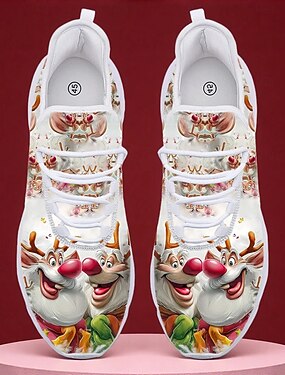 Tênis masculinos com estampa de Papai Noel, calçados casuais leves e respiráveis para festas de fim de ano, roupas festivas e presentes de inverno