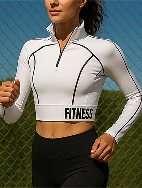 Mulheres Letra Camiseta de Corrida Top de corrida Top de esportes Verão Primavera Quarter Zip Manga Longa Leve Respirável Corrida Ioga Preto Branco Roupa de esporte Roupas Esportivas