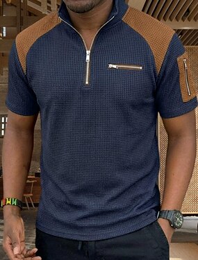 Homens Camisas Polo Waffle Camisas Polo Casual Diário Quarter Zip Manga Curta Moda Básico Bloco de cor Zíper Leve Verão Primavera Normal Preto Branco Azul Marinha Caqui Cinzento Camisas Polo Waffle