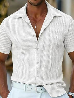 Homens Camisa Social Camisa Waffle Textura Camisa casual camisa de botão Azul Preto Branco Rosa Caqui Manga Curta Tecido Lapela Casual Diário Roupa Moda Moderno Casual Confortável
