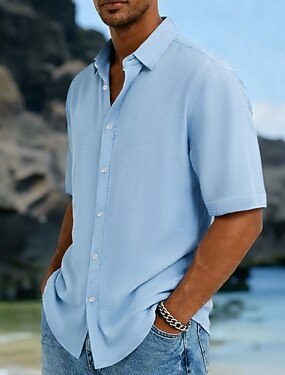 Homens Camisa Social Camisa Waffle Camisa casual camisa de botão Azul Preto Branco Verde Manga Curta Tecido Colarinho de Camisa Casual Diário Botões Roupa Elegante Moda Casual