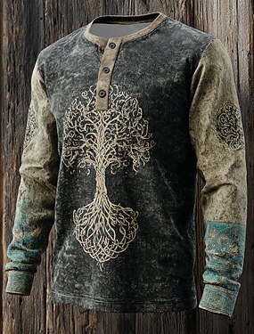 Homens Gráfico Árvore Camisa Henley Camisetas gráficas Manga Longa Vintage Moda Estilo bonito Casual Feriado Para Noite Primavera Outono Primavera & Outono Preto Henley Camiseta Henley