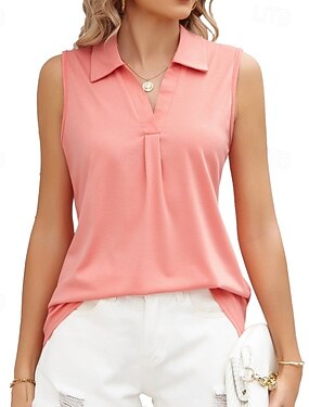 Mulheres Malha Íntima camisa sem manga T-shirt Côr Sólida à moda Clássico Casual Sem Manga Colarinho de Camisa Tops regulares Diário Para Noite Final de semana Preto Branco Rosa Vinho Azul Marinha