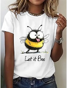 Páscoa Mulheres Camiseta Imprimir Gráfico Animal Desenho Animado Moda à moda Clássico Manga Curta Gola Redonda Tops regulares Diário Final de semana Azul Preto Branco Rosa Roxo Verão Primavera
