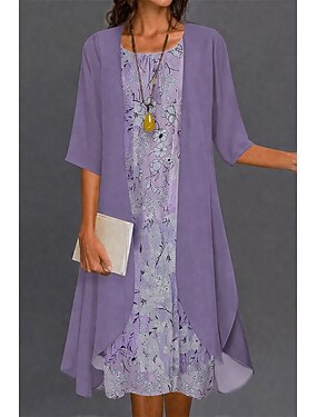 Mulheres Vestido midi Vestido de turno Vestido casual Básico Diário Ao ar livre Férias Normal Floral Floral Ditsy Manga 3/4 Gola Redonda Azul Marinha Verão Primavera