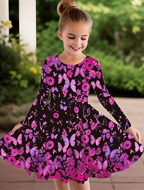 Meninas 3D Borboleta Flor Vestido Manga Longa Verão Primavera Férias Diário Feriado Princesa Lindo Doce Infantil 4-12 anos Vestido casual Vestido A Line Altura dos Joelhos Normal