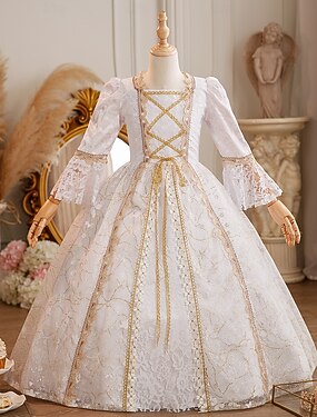 Retro Vintage Rococó chique Maxi Vestido Coquetel Acessórios Sino Princesa Laço Retro De Baile Quadrado Fantasia Para Meninas Real Natal Dia Das Bruxas Carnaval Mascarilha Festa de Casamento Festival