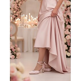 saltos altos femininos de cetim rosa com tiras no tornozelo e detalhe de laço – sapatos elegantes para casamento ou festa com salto médio para ocasiões formais