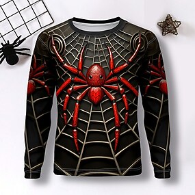 Para Meninos 3D SPIDER Camiseta Camisas Manga Longa Impressão 3D Outono Inverno Esportes Moda Roupa de rua Infantil 3-12 anos Gola Redonda Ao ar livre Casual Diário Normal